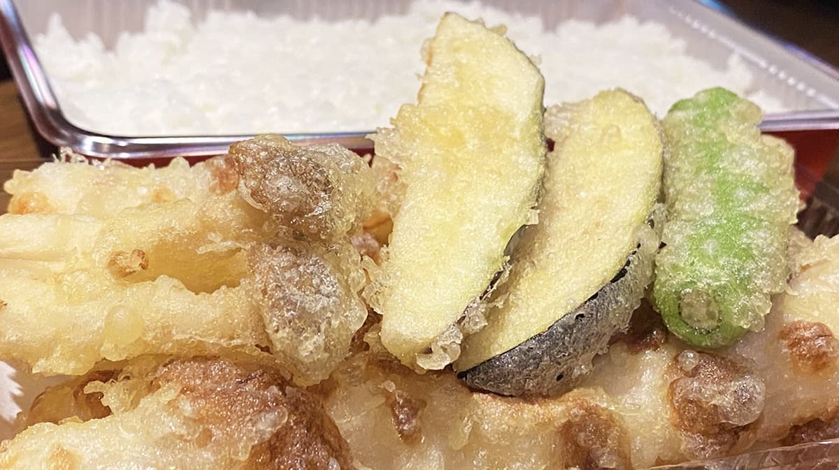 ご飯に沁み込んだ甘辛い天丼タレとの相性バッチリ。リピート間違い無しの当店自信作!みんな大好きな大きなちくわを2.5本使用し、野菜の天ぷらも3種のせたボリュームに溢れ、コスパ抜群な天ぷら弁当です。美味しく召し上がっていただくためご飯は別添えとさせていただいております。