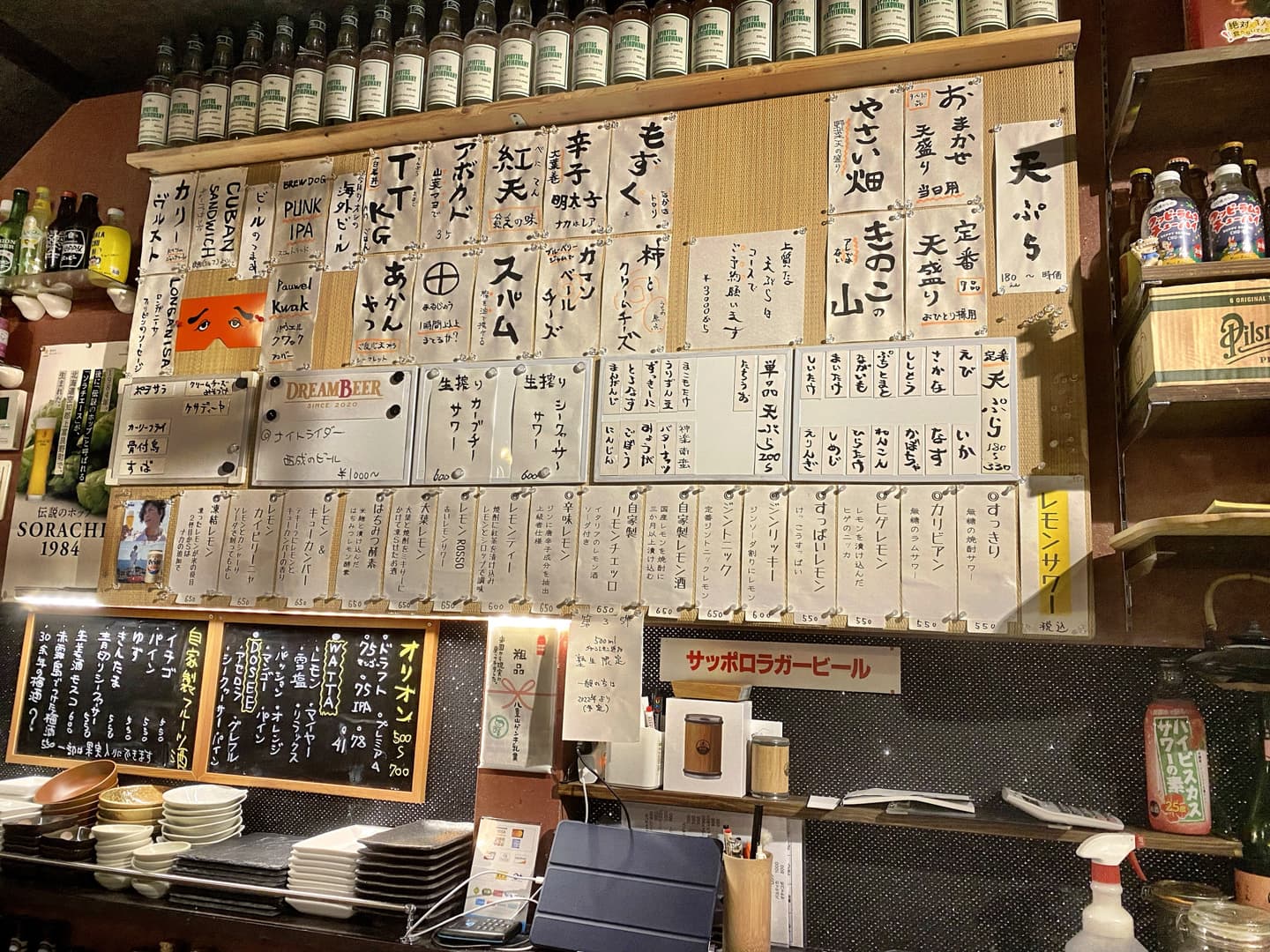 一言先に断っておきますが・・・当店に日本酒はありませんので、悪しからず。その変わり、泡の出るお酒(ビールや酎ハイ、ハイボールなど)と日本の蒸留酒(焼酎や泡盛)は「これでもかっ!」というくらいにラインナップを充実させております。様々なお飲み物をお楽しみください。
