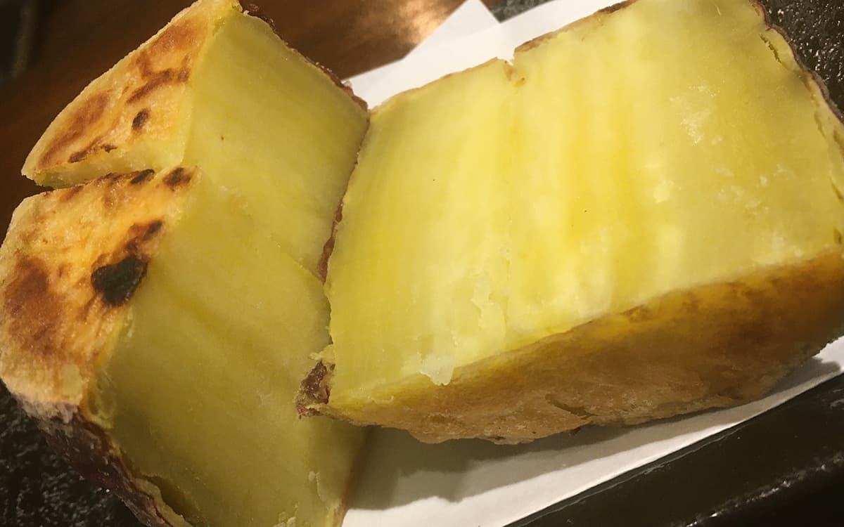 丸十とは、天ぷら屋さんの隠語で「さつま芋」のこと。イモの甘さを引き出したホクホクの金色に輝くイモ天です。