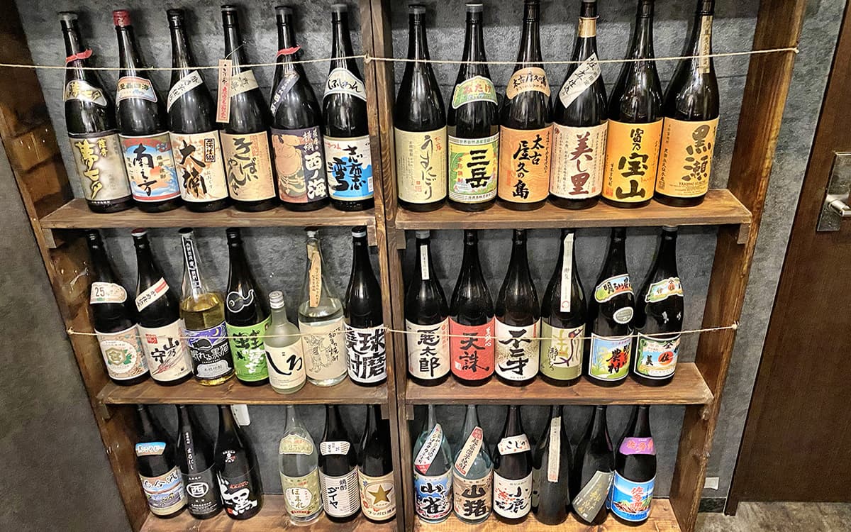 店主の趣味もありまして、黒糖焼酎がスゴイ品揃えとなっております。もちろん、麦や芋も充実のラインナップ。