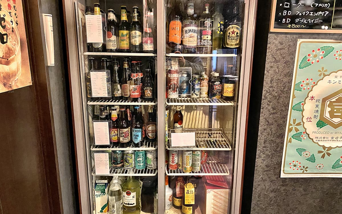 世界の様々なビールや店主が訪れた先(主に日本国内)で仕入れてくるご当地ドリンクなどを冷やしています。お試しあれ。
